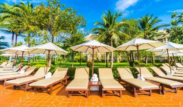 - Plush loungers and umbrellas